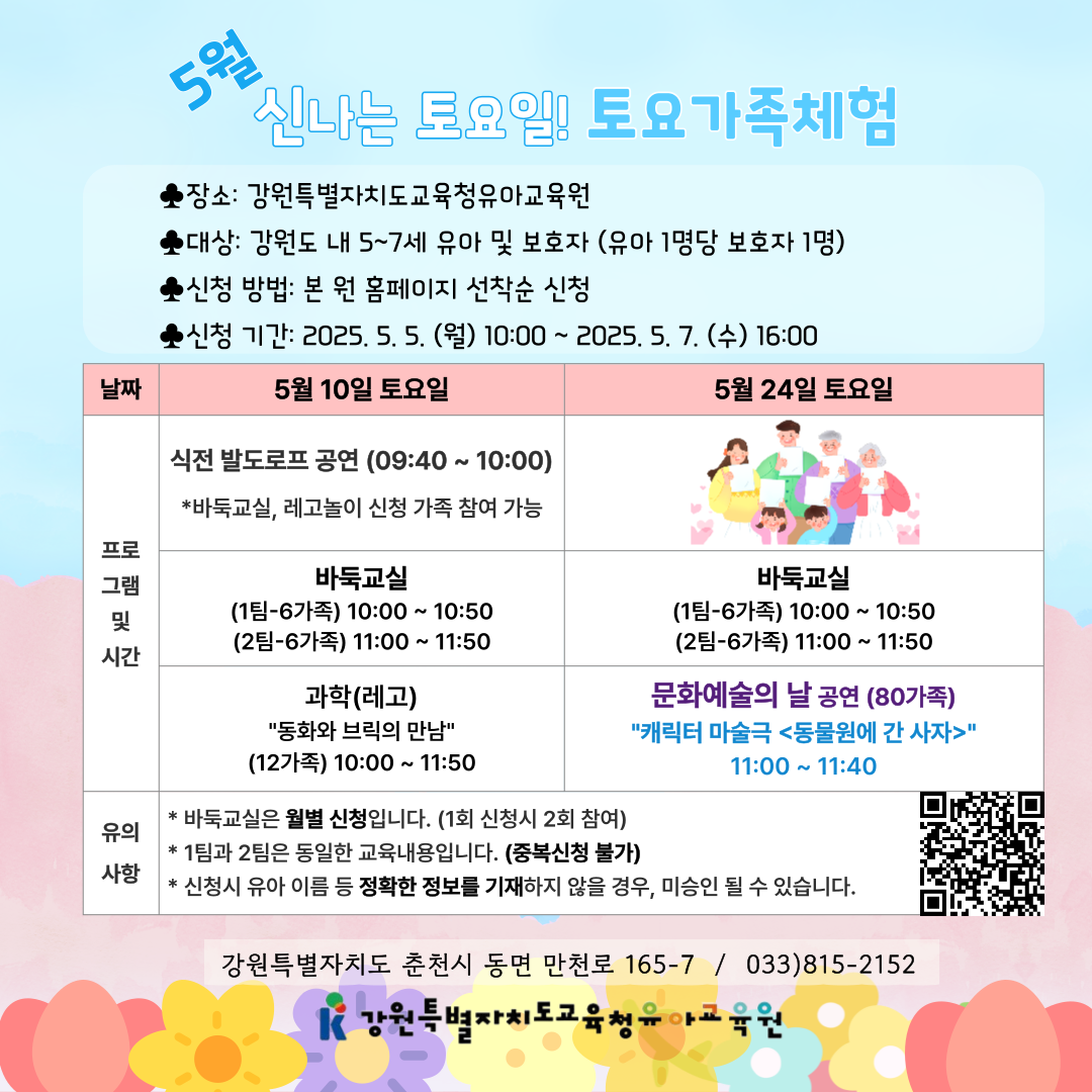 5월 신나는 토요일 토요 가족체험 안내