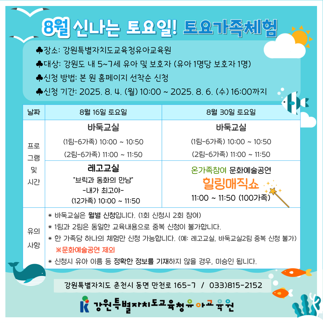 신나는 토요일! 토요가족체험 안내(8월)