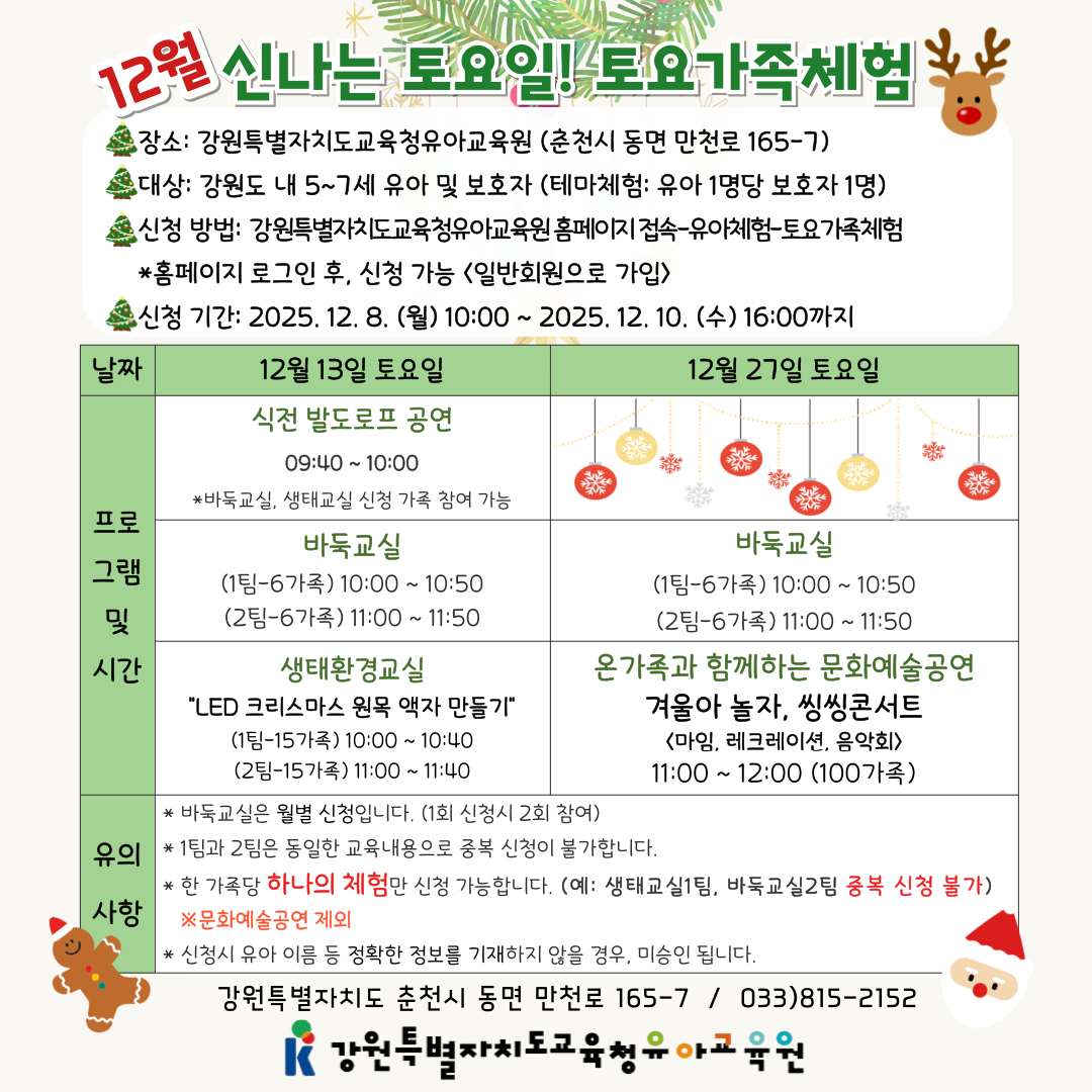 12월 신나는 토요일 토요가족체험 안내 입니다