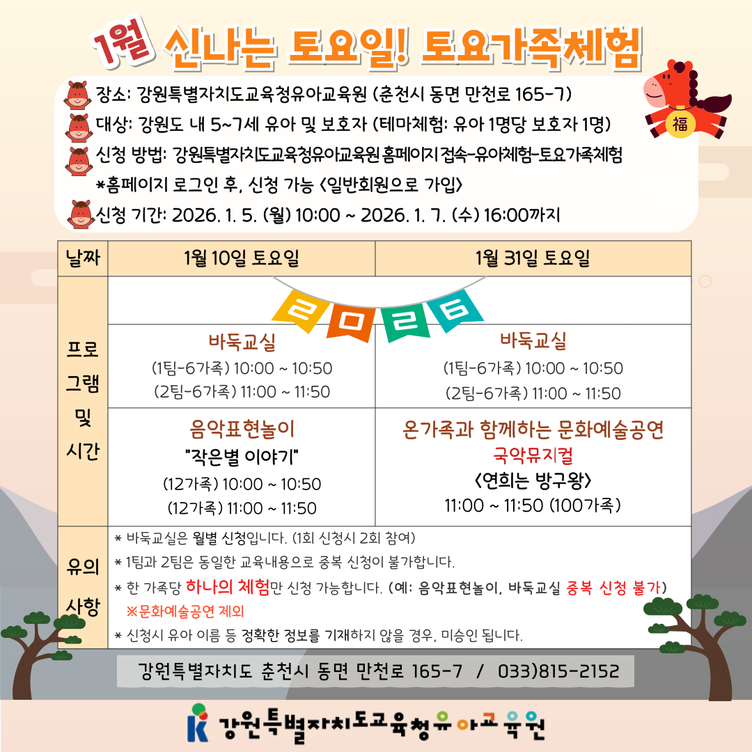 1월 신나는 토요일! 토요가족체험 안내입니다.