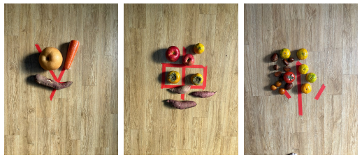 가을 먹거리로 크기 비교 놀이했어요